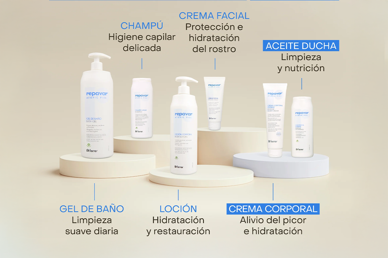 Repavar Atopic ha sido formulada para adaptarse a todas las fases de la piel con tendencia atópica: desde los momentos más críticos hasta la rutina diaria. Con texturas suaves, sin perfumes ni irritantes, sus fórmulas respetan la barrera cutánea y aportan el confort que la piel necesita para mantenerse estable y protegida. Porque vivir sin picores, sequedad ni tirantez es posible con el cuidado adecuado, día tras día.