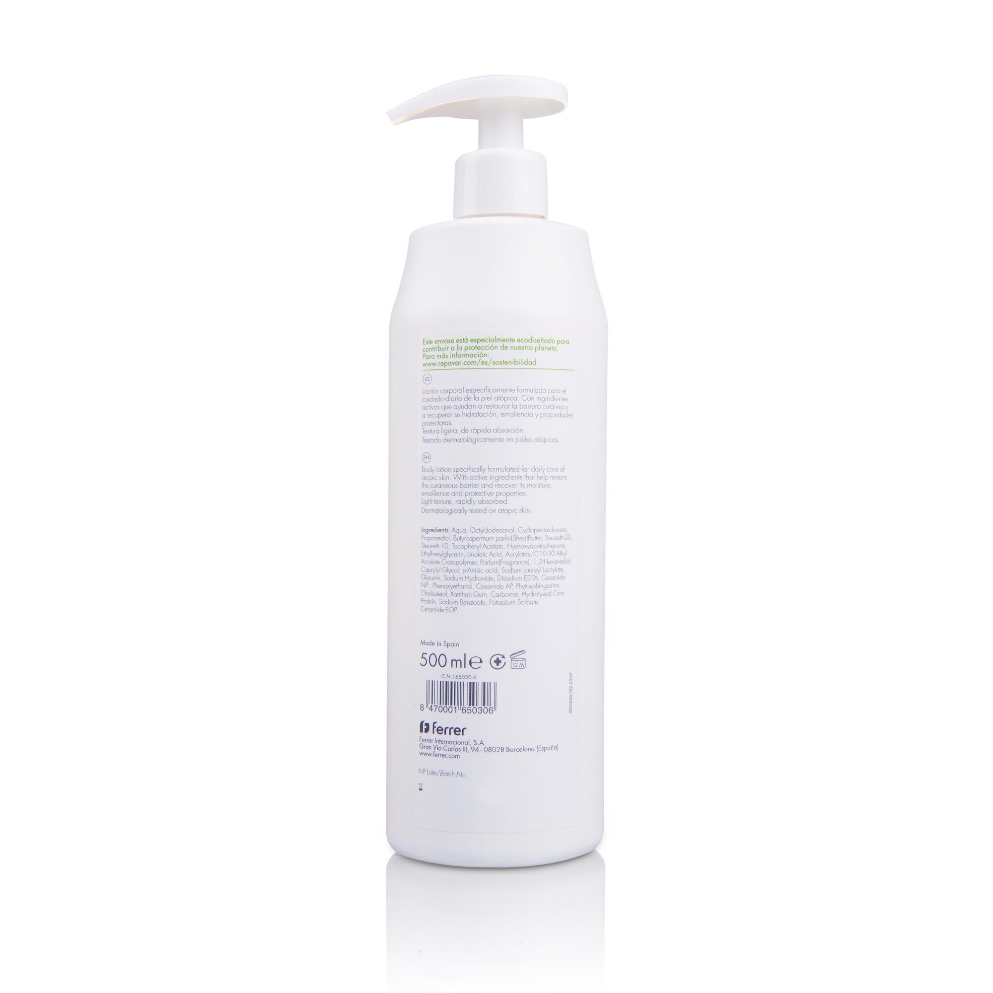 Loción corporal de textura no grasa y de uso diario para pieles atópicas, secas o muy secas, que promueve el mantenimiento y la mejora epidérmica, ejerciendo un efecto preventivo y calmante.
