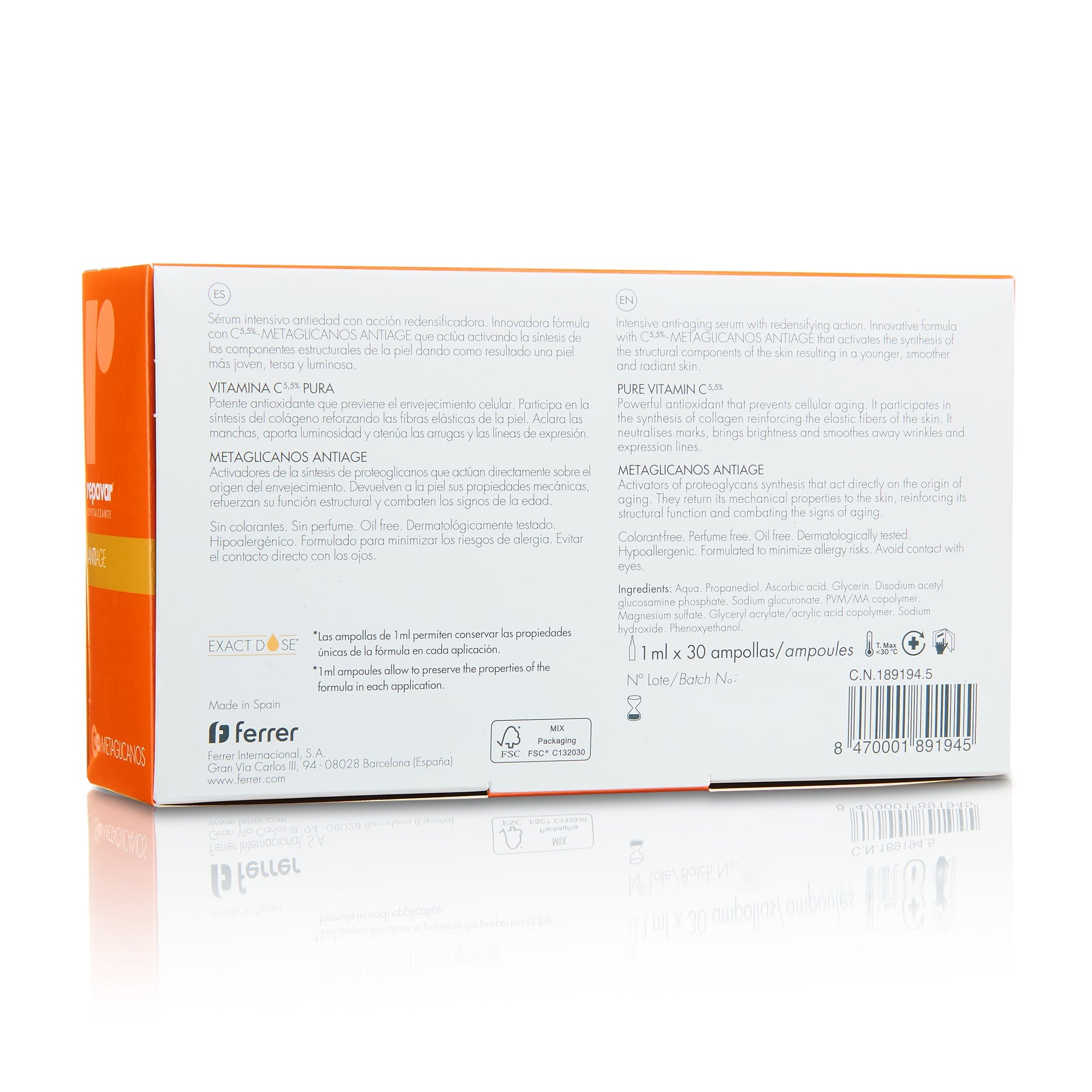 Repavar Revitalizante Metaglicanos Antiage es un tratamiento antiedad intensivo con acción redensificadora de efectividad demostrada, gracias a su innovadora fórmula con Vitamina C al 5,5 % y Metaglicanos que actúan activando la síntesis de los componentes estructurales de la piel combatiendo así los signos del envejecimiento como arrugas, líneas de expresión, pérdida de firmeza y falta de luminosidad, y dando como resultado una piel joven, tersa y luminosa.