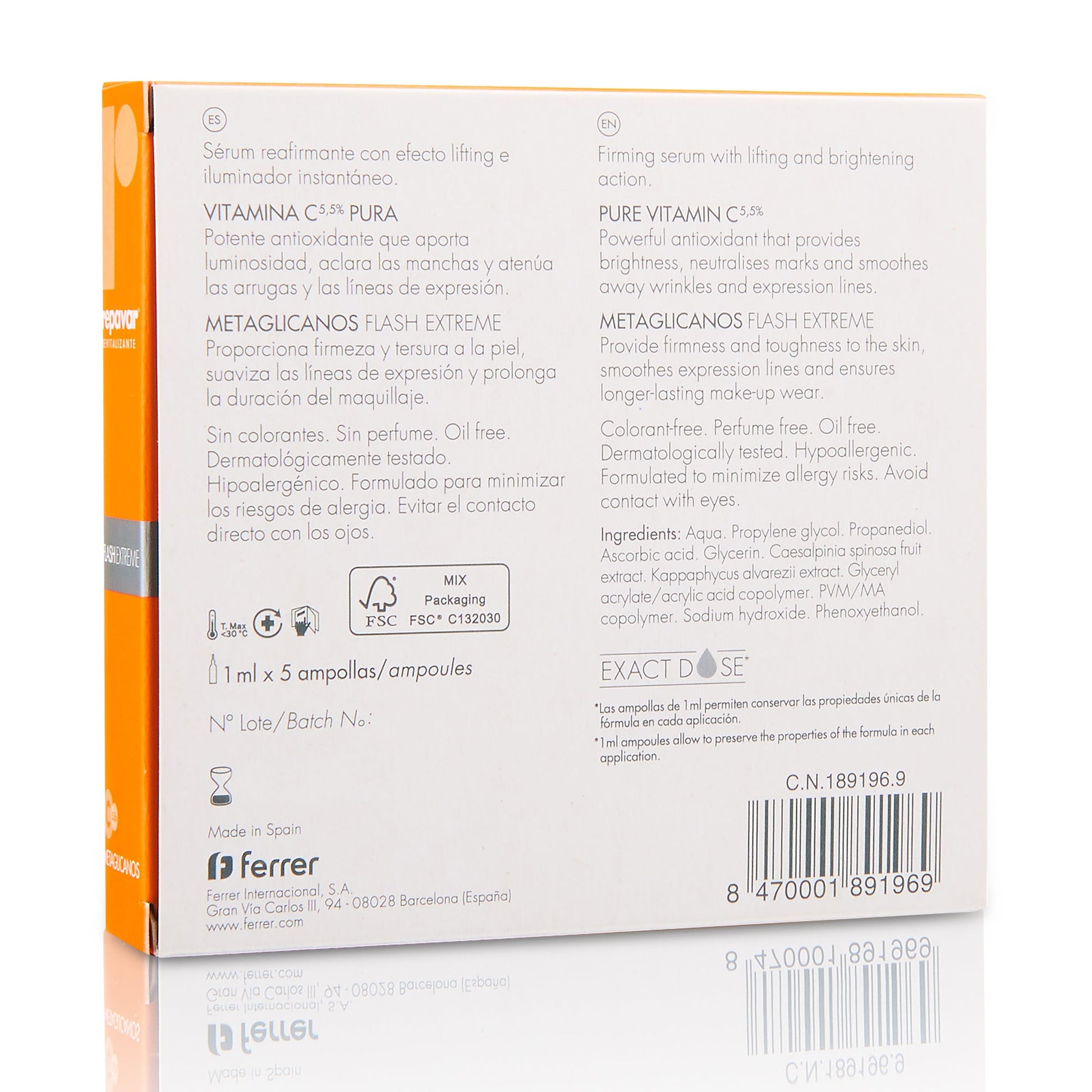 Los metaglicanos flash extreme, proporcionan firmeza y tersura a la piel, suavizan las líneas de expresión y prolongan la duración del maquillaje.