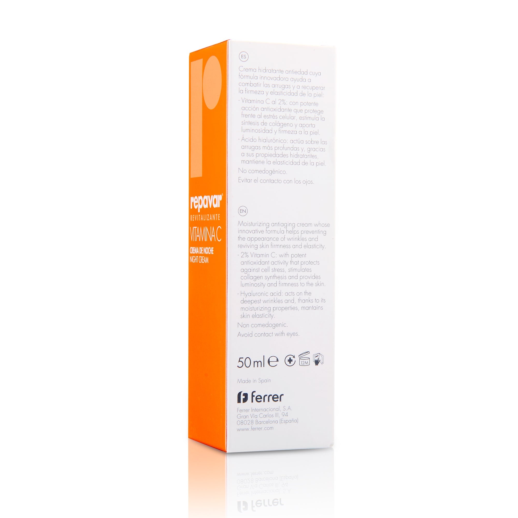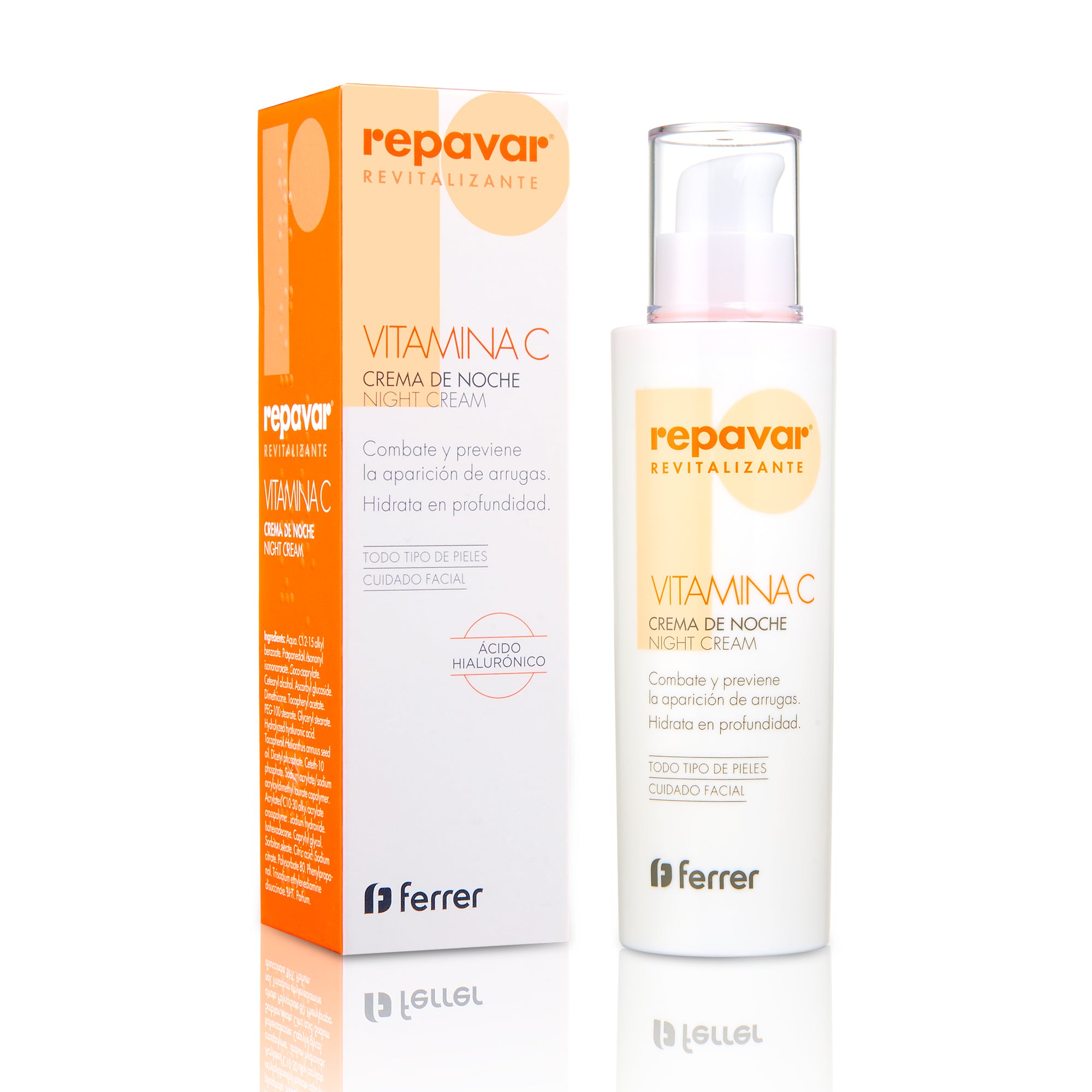 La crema facial de noche Repavar Revitalizante® nutre la piel, previene y reduce los signos del envejecimiento mientras recupera la firmeza y la elasticidad de la piel. Su combinación única de los activos antioxidantes de la Vitamina C con la acción antiaging del ácido hialurónico.
