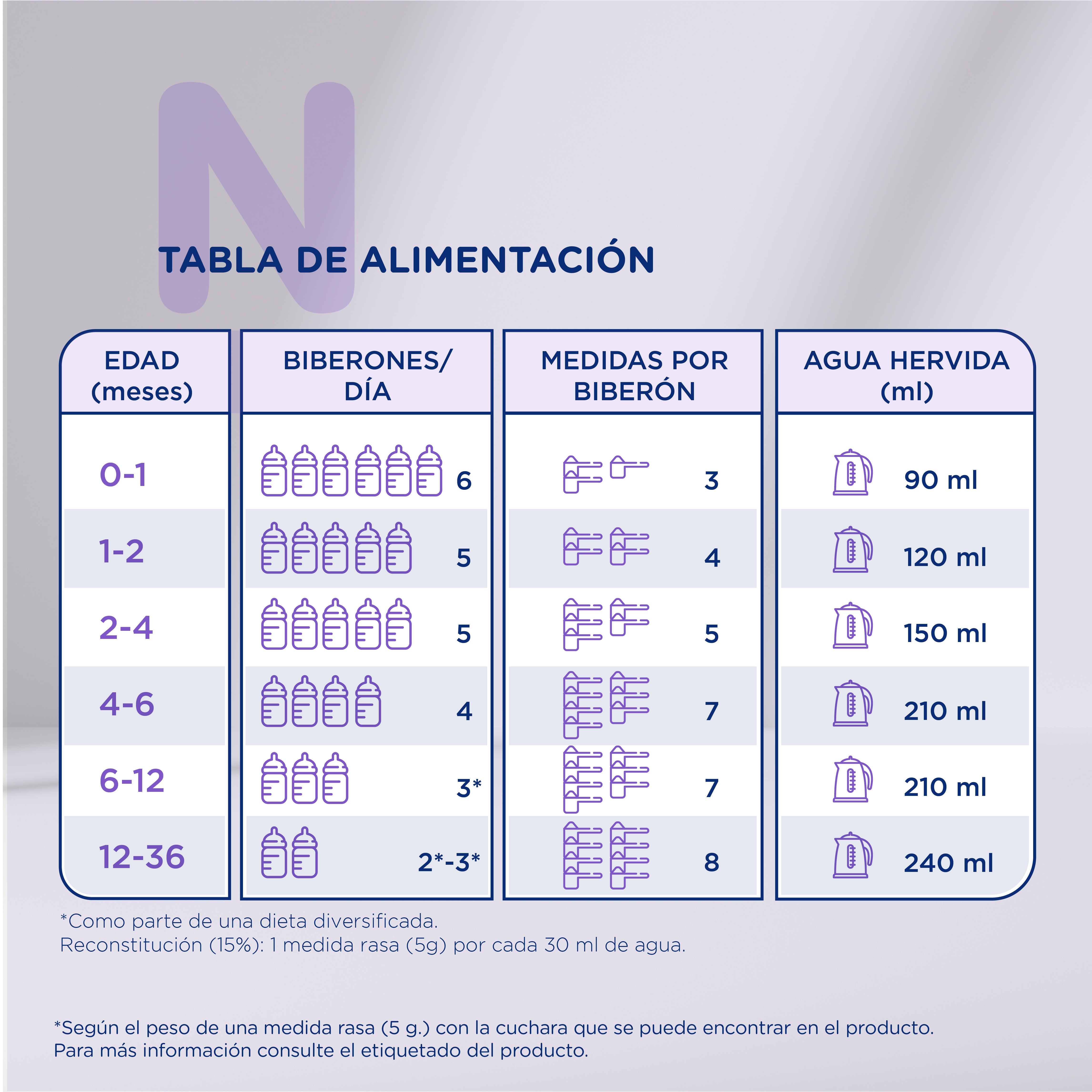 Si el bebé presenta alergia, es prematuro, ha nacido con bajo peso o es inmunodeprimido, requerirá una fórmula especial adaptada a sus necesidades nutricionales. Consulte con el pediatra. Este producto no debe administrarse por vía parenteral.