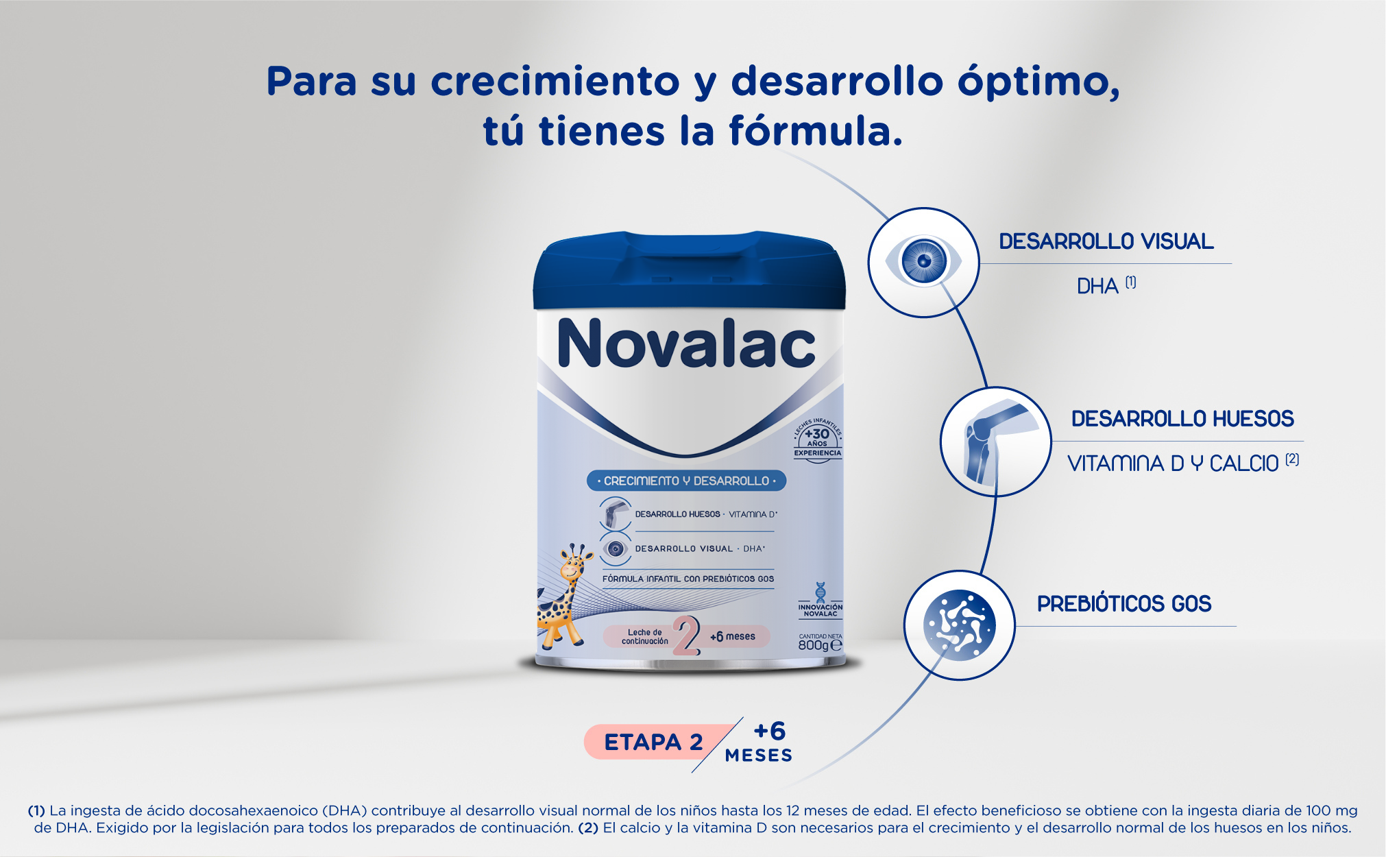 Novalac 2 es una leche de continuación adaptada a los bebés a partir de los 6 meses cuando no se realiza lactancia materna. En los bebés mayores de 6 meses, y de acuerdo con las instrucciones del pediatra, debe introducirse gradualmente una alimentación diversificada como complemento de la leche de continuación Novalac 2. Novalac 2 forma parte de una gama completa de productos especialmente desarrollados para responder a las necesidades nutricionales del bebé. No cambie de leche sin consultar con el pediatra.