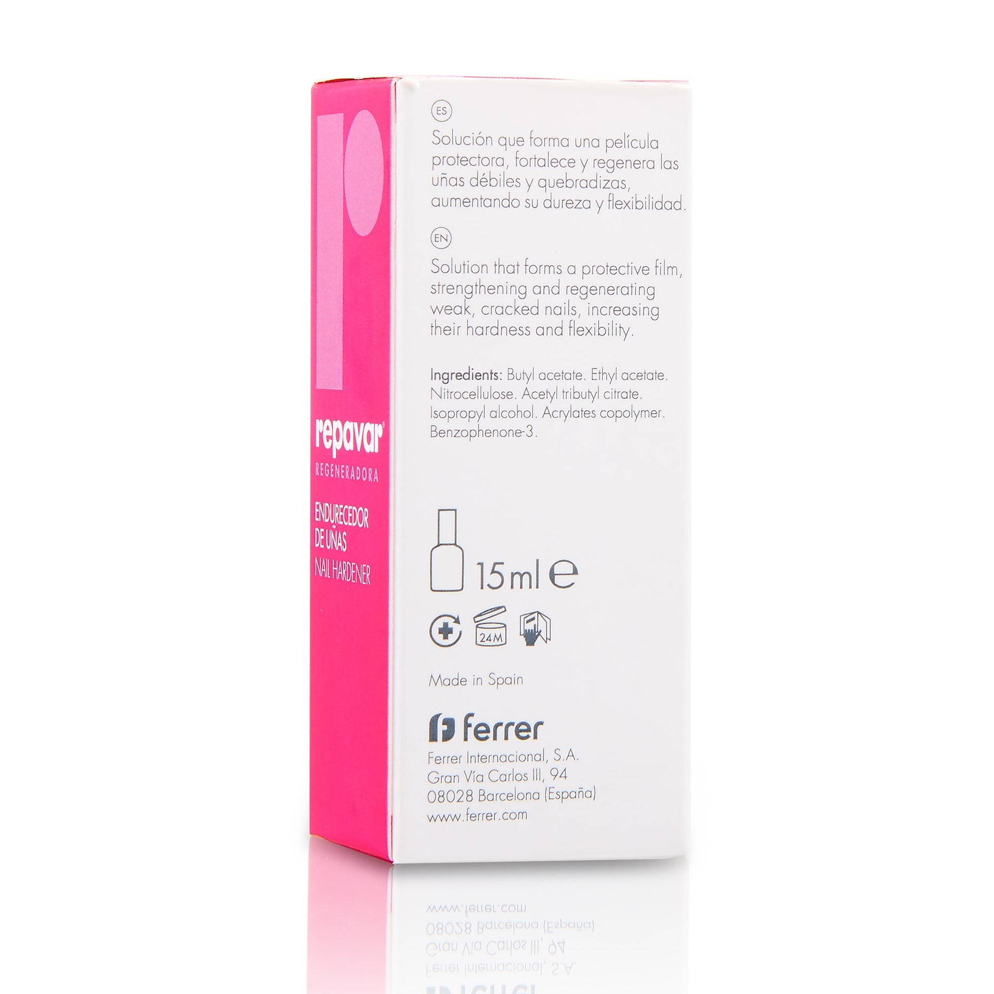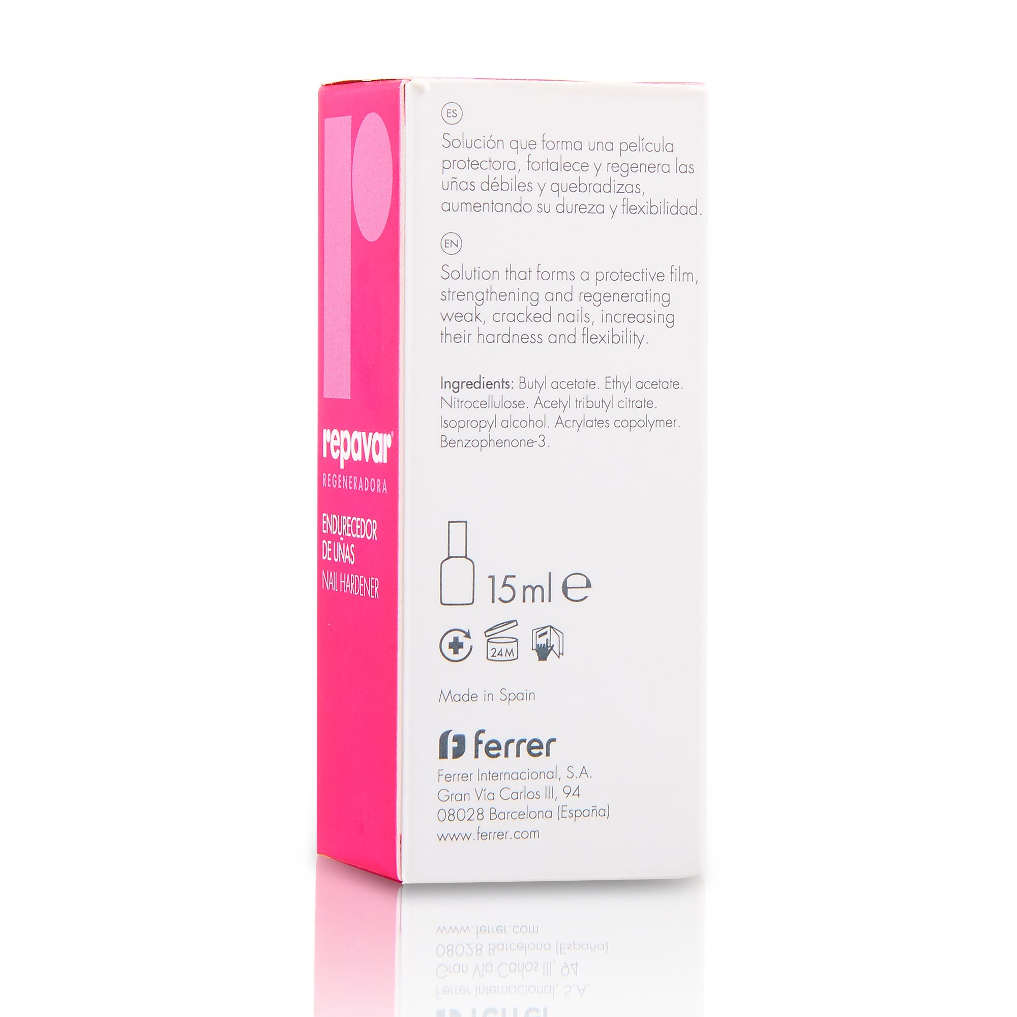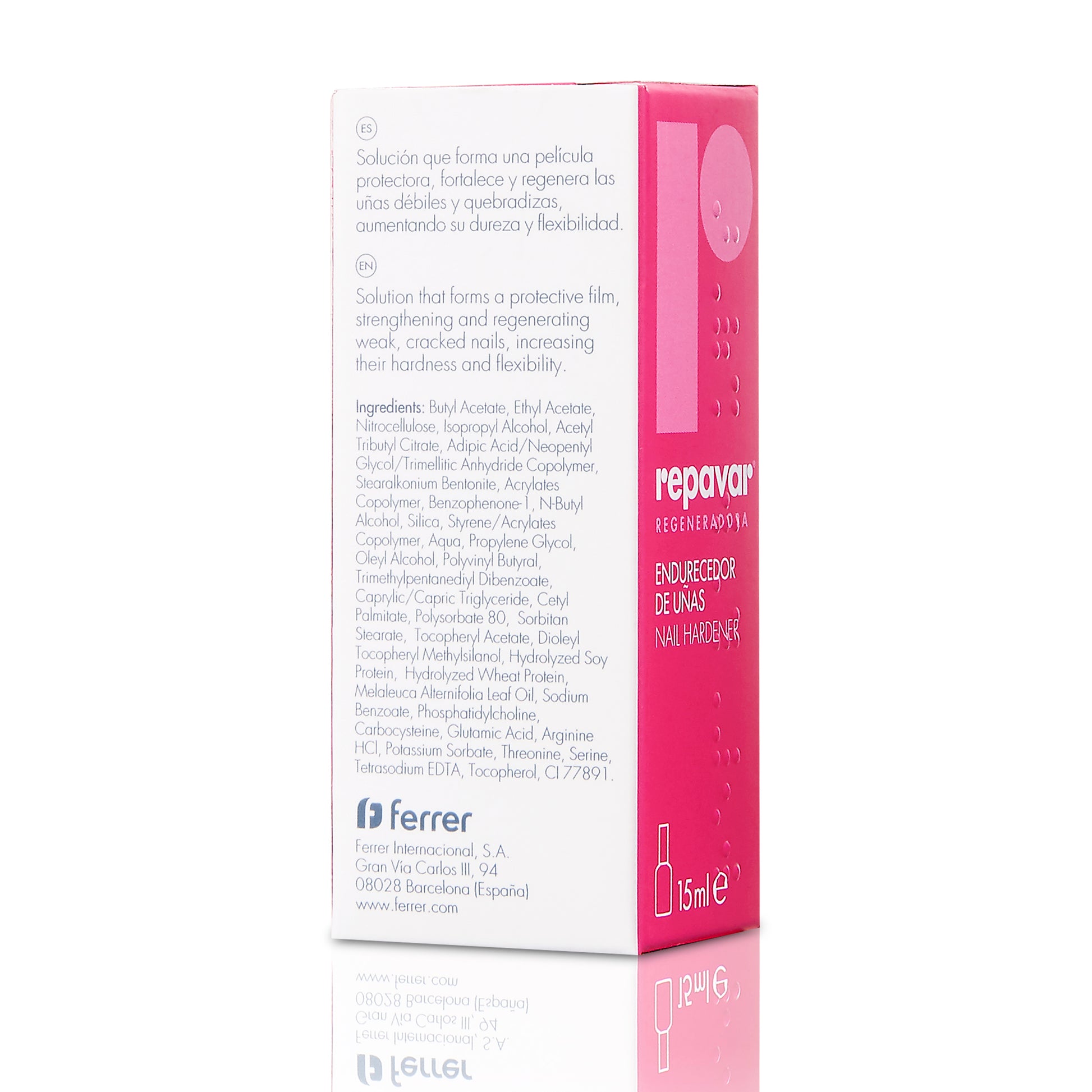 El Endurecedor de uñas Repavar® es un producto especialmente indicado para las uñas quebradizas y con tendencia a presentar roturas, fisuras y deshojamientos. Gracias a su película protectora, consigue endurecer las uñas y aumentar su dureza y flexibilidad.